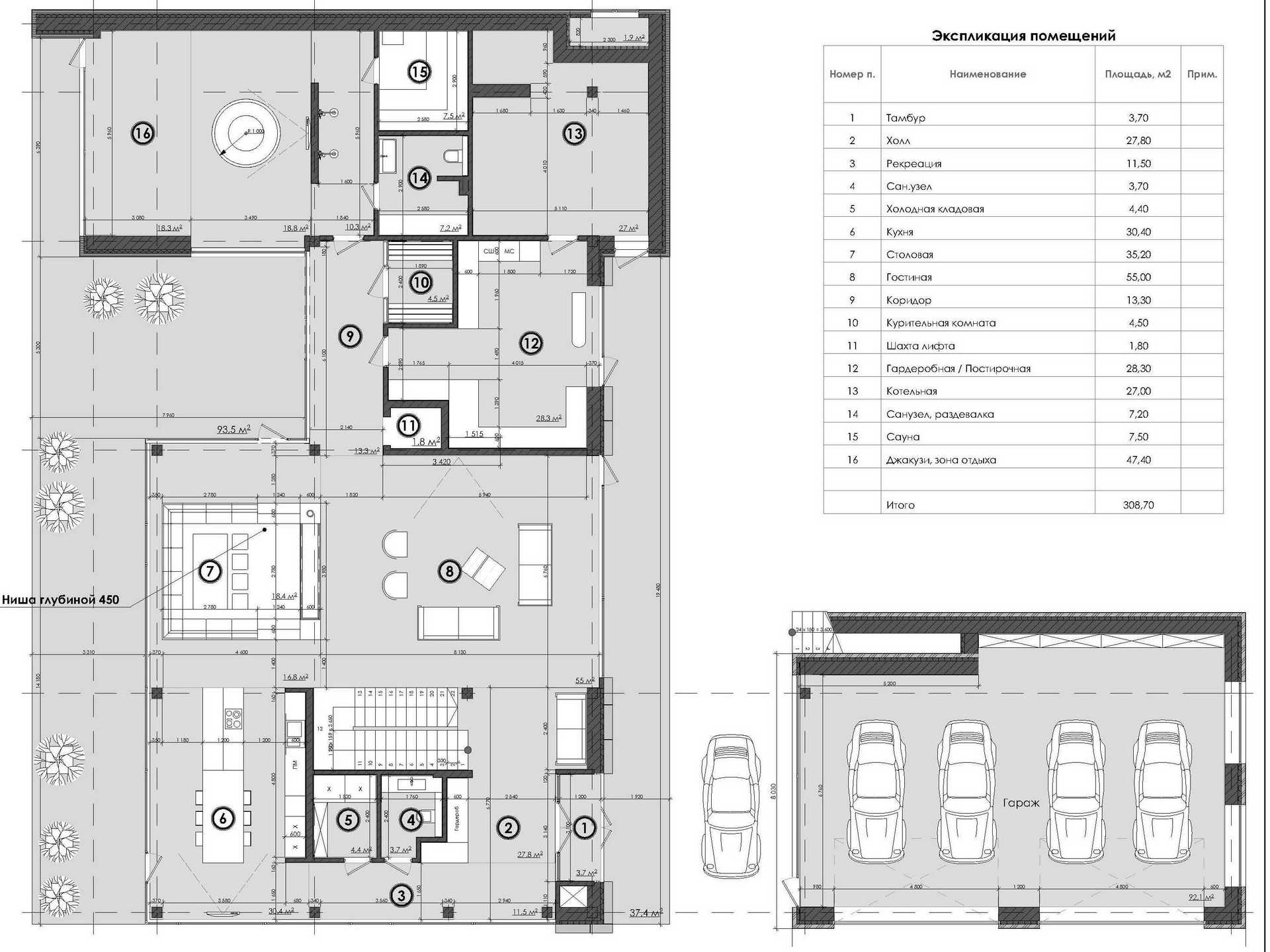 Индивидуальный двухэтажный жилой дом с гаражом, террасой и сауной.